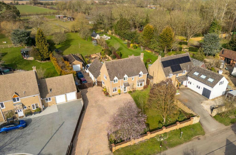 Moonstone is a traditional family home with generous square footage and scope to update, set on a c.1.2-acre plot with paddocks, garages and extensive parking, and along a quiet lane in the charming village of Finmere.