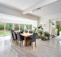 The landscaped south-facing gardens have been thoughtfully designed to maximise privacy and enjoyment, with expansive lawns and multiple patio areas ideal for al fresco dining and entertaining.