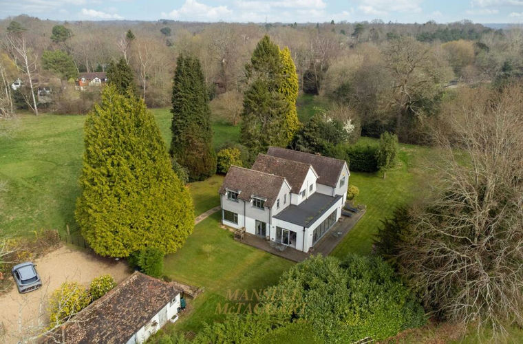 An exceptional, individually designed five-bedroom detached country residence, discreetly positioned along a private driveway, and surrounded by open countryside on the rural fringes of Crawley Down.