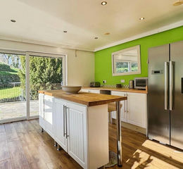Enjoying an elevated position with far reaching views, the home features four double bedrooms one bedroom having an en suite, generous living space, and a kitchen/breakfast room opening onto a raised patio.