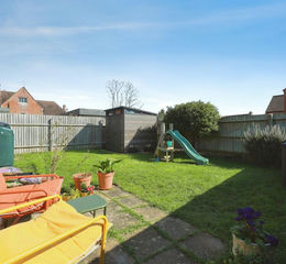 The low maintenance garden is predominantly laid to lawn, offering a pleasant and versatile outdoor space. A small paved patio area provides an ideal spot for seating or outdoor dining, while a storage shed offers practical additional storage. Timber fencing encloses the garden, creating a sense of privacy, the oil storage tank is also located within the garden.
