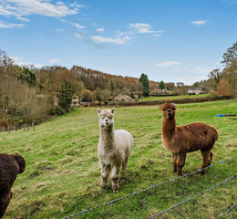 Outside - Externally, the property enjoys a particularly appealing setting with a large wraparound decked terrace that creates an ideal space for outdoor seating and entertaining. The elevated position allows the terrace to take full advantage of the surrounding views, providing a wonderful spot for morning coffee, al fresco dining, or simply relaxing while enjoying the peaceful outlook across the valley. The deck extends along the front and side of the house, offering generous space for outdoor furniture and potted plants while creating an attractive extension of the living space during warmer months. Large windows from the house overlook the terrace, helping to connect the indoor and outdoor areas. To the side of the property, a paved patio provides an additional seating area centred around a circular stone feature, making it a natural gathering point for outdoor dining or social occasions. The patio is bordered by mature planting and stone retaining walls which give the space a sense of privacy and structure. Beyond the immediate garden areas, the property enjoys far-reaching views across open fields and the surrounding woodland landscape, offering a truly picturesque rural backdrop. The neighbouring pastureland, often home to grazing alpacas, adds a charming countryside feel and enhances the tranquil setting. A further enclosed garden area to the rear provides a practical space suitable for pets, gardening, or small-scale growing projects, with fencing and a small outbuilding offering additional storage. Overall, the outdoor spaces complement the home beautifully, combining generous entertaining areas with peaceful countryside views and a strong connection to the surrounding natural landscape.