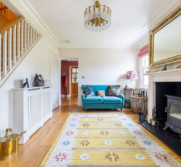 At the other end of the house are two beautifully furnished reception rooms each with their own character. The sitting room is cosy and comfortable and detailed cornicing graces the ceiling. The 30ft drawing room is the ideal place to entertain in style and is defined by a further wood burning stove set into the chimney breast. Once again, triple aspect windows and double-glazed doors make the most of the natural light. Completing the ground floor is a boot room and a cloakroom both accessible from the hall.
