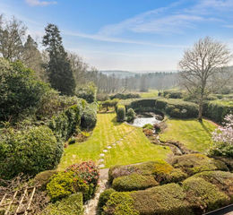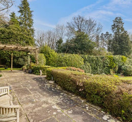 Side access to a delightful and established rear garden, enjoying a secluded southerly aspect, thoughtfully designed and planted with a wide array of plants, trees and shrubs. Rhodpendron and Laurel hedgerows provide excellent screening and an extensive paved terrace with Wisteria arbour and climbers to one end takes full advantage of the wonderful aspect over areas laid to lawn and a large stream fed pond. The section of garden next to the rear boundary could provide the perfect space for a swimming pool or tennis court and has direct access into Possingworth Park. In all the gardens extend to around one acre.