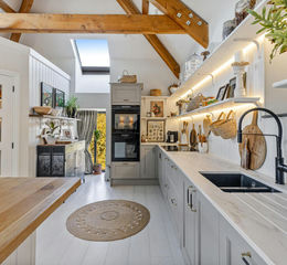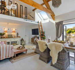- Exposed beams, mezzanine level and feature snug with balcony, blending character with versatility