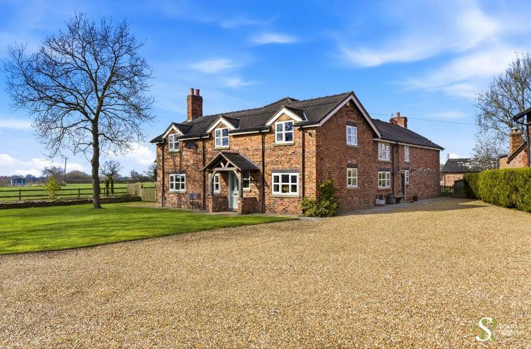 The farmhouse is set within wonderful gardens and grounds extending to approximately eight acres, making it ideal for those seeking privacy and space in a tranquil setting. The formal gardens are thoughtfully landscaped and provide a wonderful setting from which to enjoy the surrounding countryside. Beyond the gardens, a large paddock is perfect for equestrian or recreational use, and features a timber field shelter and a well-stocked carp pond. An excellent detached brick outbuilding currently provides excellent garaging/stabling/workshop space - planning permission was granted in 2015 (Cheshire West & Cheshire Council - App Number: 14/04435/FUL), now expired, for the conversion of this building into an excellent three bedroom bungalow. Those seeking multi-generational living space may be interested re-applying for permission.