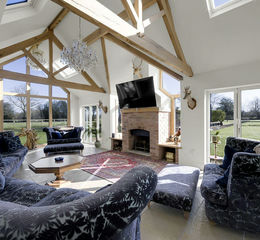 The property blends refined modern living with warmth and character. Oak floors, an AGA oven, generous proportions and an effortless flow between rooms create a home designed as much for everyday family life as for entertaining on a grand scale.At its heart lies the spectacular open plan living kitchen, a space that truly defines contemporary country living. Vaulted ceilings with exposed A-frames draw the eye upward, while bi-folding doors and full-height glazing dissolve the boundary between inside and out.