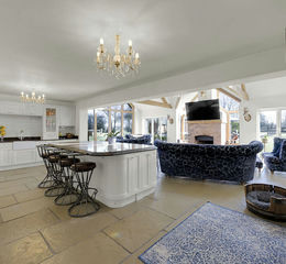 Morning coffee with views across your land, long summer evenings with doors thrown open and winter gatherings around the striking central fireplace, this is a room for every season.The substantial central island invites conversation and connection, whether hosting lively dinner parties or enjoying relaxed Sunday breakfasts. The adjoining family area ensures that cooking, dining and unwinding happen together in one exceptional, light filled space.Three additional reception rooms offer flexibility to suit any lifestyle, a peaceful study for working from home, an elegant sitting room overlooking the ornamental pond, and a cosy snug for quieter evenings.