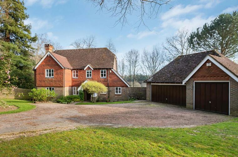 A beautifully refurbished five bedroom, five bathroom country home, occupying an exceptional plot of approximately one acre, set within the exclusive Copperfields development on the former Coolhurst Estate, to the south east of Horsham and bordering the southern edge of St. Leonard’s Forest. Built in 1996 by esteemed housebuilder Hill Reed Homes to an exacting standard, Copperfields comprises just ten individual homes, each sitting within generous grounds of around an acre. Only two properties of this particular design were constructed, "Sleepy Hollow" having one of the largest plots, and with just three resales having taken place since the development was built, this represents a genuine once-in-a-decade opportunity. The house comes to the market for the first time since it was built and has been subject to a comprehensive schedule of works in recent years, creating a superbly appointed modern home that is ready to be enjoyed by its next owner. Positioned at the very end of this private development, the house enjoys a particularly peaceful setting and benefits from elevated and unspoilt southerly views across parkland, vineyard and a lake of the River Arun beyond. The ground floor accommodation comprises a welcoming entrance hall, a triple aspect sitting room with inglenook fireplace and French doors to the rear garden, a separate family room, a study overlooking the tree-lined frontage, a fabulously appointed kitchen which is open to a dining area with two sets of bifolding doors making it possible to open this space to the garden seamlessly. There is a separate utility room and a stylish downstairs shower room which complete the ground floor. On the first floor there is a bright galleried landing, a principal bedroom suite enjoying the far-reaching southerly views, with a walk-in dressing room and luxury ensuite shower room. There are two further guest bedrooms, each with ensuites. Two additional double bedrooms are served by a recently refitted family bathroom, and make up the first floor. Outside, the grounds are a standout feature of the property. The tree-lined driveway meanders through mature redwoods, rhododendrons and camellias, and opens to a private driveway which provides off-road parking for numerous vehicles and access to the detached triple garage. The gardens wrap around the house to give space at every border and enjoys an unspoilt, sunny southerly aspect to the rear, with a generous patio ideal for entertaining, areas laid to lawn, a timber summer house with decked seating, well-established rhododendrons, specimen trees, and a vegetable garden positioned just a few short steps from the kitchen. Despite its idyllic rural setting, the property is conveniently located just 1.5 miles from Horsham town centre, offering a rare combination of rural surroundings with excellent accessibility. Viewings are highly recommended to fully appreciate the quality of this exquisite Sussex home.