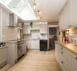 The main access is through the attractive porch with exposed stonework which opens into a good sized hallway with a study area and stairs up to the first floor. There is a good flow to the layout with a modern shower room adjacent to the stairs and with the hallway providing access to the two double bedrooms towards the left hand side (both with attractive views) and on the right hand side into the modern kitchen with exposed stonework, attractive store units with a Rangemaster oven and hob, sink with side drainer, space and plumbing for dishwasher. An archway opens into the Dining Room overlooking the garden with double doors out to the delightful Garden Room with vaulted ceiling, exposed stonework, and excellent views of the garden and surrounds. The Living Room is accessed from the Dining Room and also overlooks the lawned garden with double doors out.