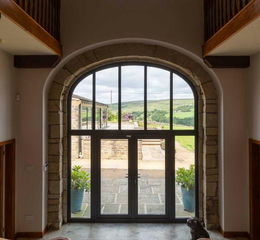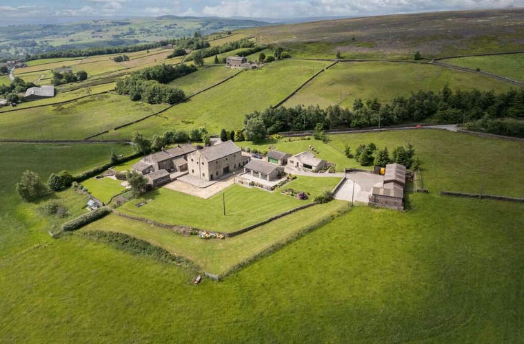 Set high above the valley on the edge of Midgley, High House Barn is an exceptional rural holding with panoramic views across the rolling West Yorkshire landscape. This handsome stone conversion combines privacy, scale, and a level of finish rarely found in such an idyllic countryside setting. The property comprises a four-bedroom principal barnhouse, a detached two-bedroom cottage, a purpose-built leisure suite with indoor pool, a double garage with gardener's WC, and a substantial agricultural workshop with adjoining stables, all set within approximately 7.25 acres of gardens, grounds, and grazing land