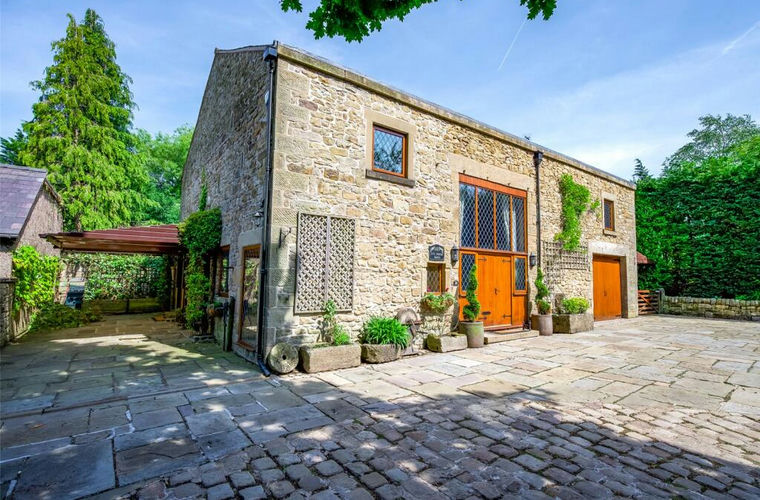 Set back from Lightfoot Lane, this FABULOUS BARN CONVERSION is highly attractive and substantial in nature. The property is entered from the driveway into a large stone flagged parking area at the front of the property where there is a low stone wall. It is evident to see the excellent levels of PRIVACY at the property demonstrated by the mature planting.The substantial double doors are set within a picture window and open into an incredible entrance hall. On entry, the stunning bespoke staircase splits at half level with a galleried landing overlooking this impressive space. The ceiling is double height and there is a fabulous Italian porcelain tiled floor along with exposed beams. A gas fired wood burning style stove is set in an impressive limestone surround.