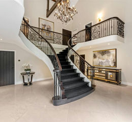 Those fabulous stairs rise up to the first floor galleried landing where there are four bedrooms in total.