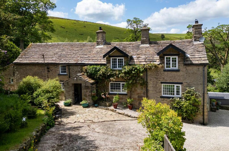 A Charming 18th-Century Farmhouse in the Heart of the High Peak, nestled within approximately 7 acres of enchanting grounds, this beautifully appointed 18th-century farmhouse blends timeless character with modern comforts. Set amidst the stunning landscape of High Peak, the property features serene woodlands, a thriving young orchard, a well-kept vegetable patch, and a beautifully maintained garden—an ideal setting for entertaining family and friends. Internally, the home offers generous and versatile living spaces, including a bespoke David Lisle kitchen with warm terracotta flooring, thoughtfully designed for both style and function. A standout feature is the impressive 27ft living/dining area, boasting exposed beams, dual-aspect windows, and a cozy multi-fuel burner that adds both charm and warmth. Adjoining the kitchen is a spacious office/snug, tastefully decorated and opening via French doors to an inviting outdoor seating area. Additional ground floor amenities include a utility room and a contemporary shower room. Upstairs, the property offers three well-proportioned double bedrooms, including a striking master suite with a vaulted ceiling, exposed beams, and dual-aspect windows that perfectly frame the idyllic countryside views. This unique home offers a rare opportunity to enjoy rural living without compromise, combining period charm, space, and the beauty of nature in a truly special setting. Externally, the property also benefits from a detached double-storey garage, rebuilt in 2017. The ground floor provides ample space for vehicle storage, along with a convenient W.C., while a staircase leads to the first-floor games room. A fantastic, versatile space ideal for family activities, entertaining, or potential conversion to a home office or studio.