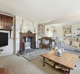 Lounge - 6.07m x 3.48m (19'11" x 11'5") - With cast iron stove, two radiators, display shelves and cabinet.