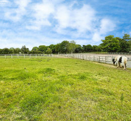 Entered through a large wooden gate which leads to a spacious concrete hard standing area which houses a static caravans with potential rental income whilst offering ample parking for multiple vehicles. There is approx. 6 acres of Smallholding/Equestrian consisting of a stable block which multiple stables, tack/feed room and a hay barn. There are four paddocks of various sizes all with water and field shelters, coupled with a 25m x 40m ménage. There is also a sizeable garage to one side.