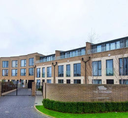 The site is set in an impressive, gated complex with a communal entrance garden.