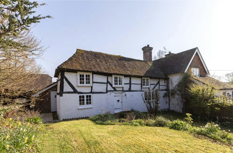 An impressive and charming Grade II listed home, believed to date from the 17th century, set within over two acres of stunning gardens and grounds with equestrian potential. Wrotham Hill Cottage retains immense original character, with exposed beams, timber-framed walls and an inglenook fireplace, complemented by a skilfully extended layout and a detached annexe. Further highlights include a double carport, sweeping gravel driveway and idyllic views.
