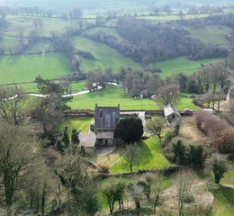 The gardens which surround the house are mainly laid to lawn with mature trees and established planting, and enjoy far-reaching views across the surrounding valley and countryside, which form one of the most striking features of the property.