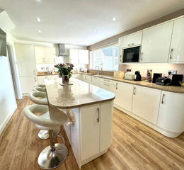 Open Plan Kitchen + Dining - the heart of the home, a wonderfully sociable space where everyone will relax instantly. There are areas for cooking and dining – with spaces for both smaller numbers and for larger gatherings. The impressive kitchen area is beautifully appointed, with a wide window overlooking the garden and creating a well-lit space. There is an extensive range of wall and base units - with elegant, rounded edges, and including cupboards and drawers, a dresser style unit with open and glass fronted shelving and an island providing additional workspace and spacious breakfast bar. All of this is complemented by quartz worktops and integrated appliances, including oven and grill, dishwasher, fridge freezer and microwave, alongside a ceramic hob with extractor. The space flows seamlessly into the dining area. Doors lead through to the snug; and to the boot room, utility and cloakroom/wc.
