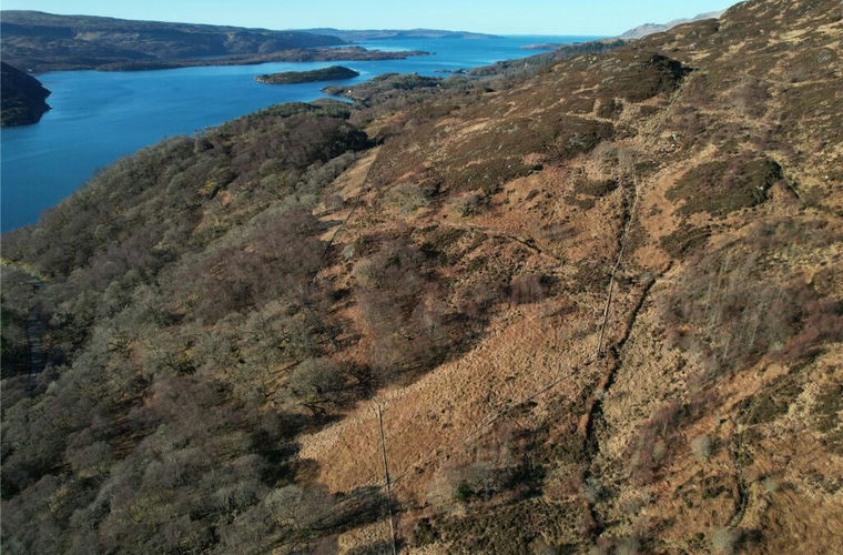 A potential development with an attached parcel of lower hill land, a natural habitat comprising open hill ground, fenced native woodland on the Ardnamurchan Peninsula.