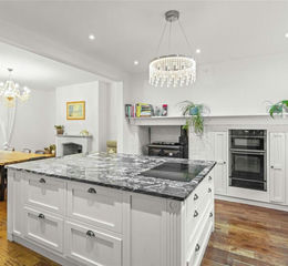 To the rear, the heart of the house is formed by a substantial kitchen and breakfast room, well-equipped and arranged to accommodate both casual dining and culinary activity. This space flows conveniently into a utility room and cloakroom/WC, ensuring practicality for busy households. A notable feature is the annexe to the rear of the property, which has planning permission to extend and create additional accommodation. If the added rooms are not required, the space could be renovated to create a ground floor bedroom, gym, home office or games room offering exceptional versatility, We have digitally created what this space may look like once works have been completed.