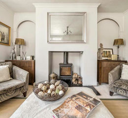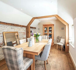 Originating from around 400 years ago featuring many original characteristics including door architraves, cornicing, wall panelling, stripped floorboards and sash windows with shutters. The property offers generous sized rooms to the main house and benefits from a separate 2 bedroom barn within its grounds, which provides excellent multi-generational living accomodation. Recent improvements also include a brand new heating system with cast iron radiators, improved insulation, front aspect has been re-rendered. Entrance is into the hallway which has the staircase and cloakroom, then doors to the front drawing room which has a stunning ornate window and wood burner. From the hallway is the utility/boiler room and then into the sitting room. The sitting room has French doors for direct garden access and views across, as well as a fireplace with inset cupboards . Next to this is the family room which has a door up to the back staircase. To the far end of the house is the kitchen / breakfast room. Featuring stone floor tiles, the breakfast end has original beams and then part vaulted at the kitchen end with a Velux window for natural light. The kitchen has hand made painted shaker kitchen cabinets with granite worktops, built in pantry and AGA. At the back of the kitchen is the separate dining room, featuring a beautiful exposed brick and limestone wall.