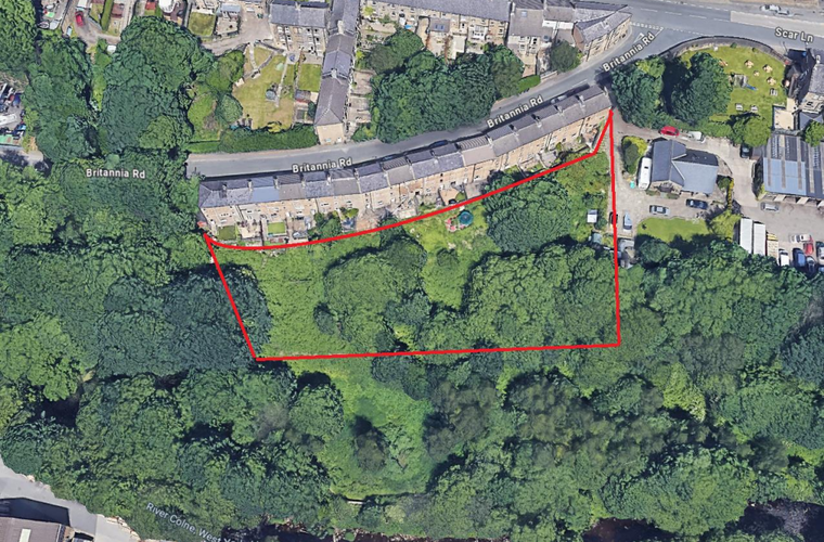 The property comprises a wooded area of land positioned between Britannia Road and the River Colne on the edge of Milnsbridge district centre.