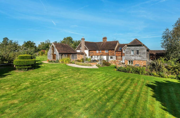 VIEW THE PROPERTY FILM NOW! Looking out and surrounded by over 2 acres of beautiful grounds, Hall Place Farm is a captivating Grade II listed home with vaulted beamed ceilings, timber framed walls and inglenook fireplaces. A charming example of Wealden-style architecture, this late 15th century farmhouse has undergone meticulously sensitive renovation, beautifully marrying its medieval origins with energy efficient design such as ground source heat pump. A converted granary, annexe/studio and outbuildings provide ancillary accommodation and scope (STNC), combining with the main residence to proffer a magnificent layout of over 6000 sq.ft.