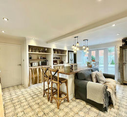 - Spacious, characterful dining kitchen – Includes a revolving Aga log burner, solid wood worktops, Rangemaster cooker and sink, large dining space, and doors opening outside, ideal for entertaining.