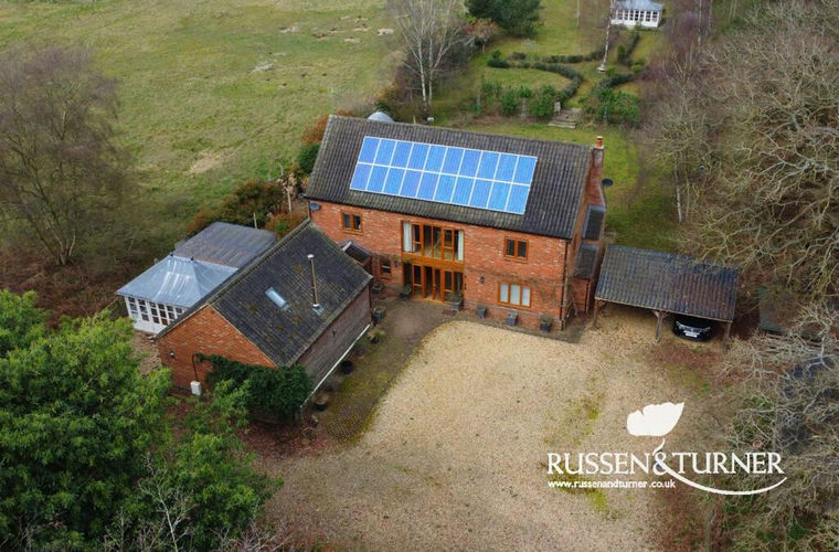 GUIDE PRICE £825,000 - £875,000. Tucked away in the heart of West Bilney’s enchanting Scots pine woodland, this quite remarkable barn-style home offers a lifestyle that feels a world away from the everyday. Approached via a bridleway through Forestry Commission land, the sense of arrival alone sets the tone for something truly special. Mark Lock at R&T, describes this as one of his favourite instructions in over 30 years, in no small part due to its breath-taking, peaceful setting.