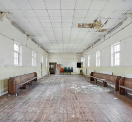 The building comprises of a large main room measuring just over 62 feet by 20 feet, a separate kitchen, two toilets and a mezzanine landing which could be used as an office space or as storage. The property has Gas Central Heating via a Vaillant combination boiler, wood panelled flooring and uPVC double glazed windows down each side of the main room which would therefore lend itself well to be divided into smaller rooms. Consents will be necessary for changes in use, previously the building was a Church and then used as a Church Hall but has been vacant for the past few years.