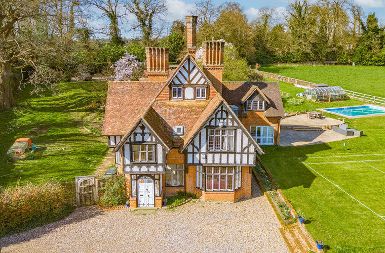Hitcham Vale is an exceptional 4000+sq ft Victorian Tudor-style residence set within a private acre of beautifully established private grounds, featuring a 1,000 sq ft outbuilding (ideal for a 6-car collection) and a scenic woodland walk to the Elizabeth Line. This substantial and elegant period home offers generous, well-proportioned accommodation across three floors, combining timeless character with outstanding versatility for modern family living and entertaining. The wraparound gardens create a private country estate feel, enhanced by a heated swimming pool and full-size grass tennis court and two stables, while a substantial detached studio building of approximately 1000 sq ft provides ideal space for home working, a gym or creative use. A self-contained top floor apartment adds further flexibility for extended family or nanny. It enjoys a distinctly rural outlook yet conveniently positioned for access to London, the motorway network and Heathrow, Hitcham Vale presents a rare opportunity to acquire a home offering lifestyle, privacy and exceptional potential in equal measure.
