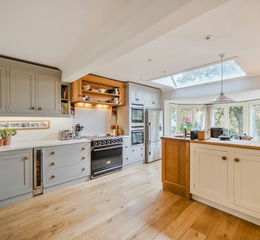 Wonderfully designed and meticulously planned out reception areas, which span the entire width of the house, are the running theme, offering formal yet relaxed areas. Such as the welcoming, double aspect sitting room with a large log burner, with a minsterstone fireplace, while this leads out onto the rear terrace and beautiful gardens beyond. There is a well-appointed, country style kitchen area with a central island, an array of integrated appliances while there is an appealing snug/conservatory style seating area, which flows through to a formal dining room, again with doors out onto the picturesque outside space. An impressive and renovated family room with adjoining  recently updated conservatory makes for an ideal retreat and is a pleasurable and versatile space for gatherings and hosting. A convenient study/office area is well positioned for privacy and quiet, yet still connects seamlessly to the reception areas. A handy utility room, with ample storage is also conveyed.