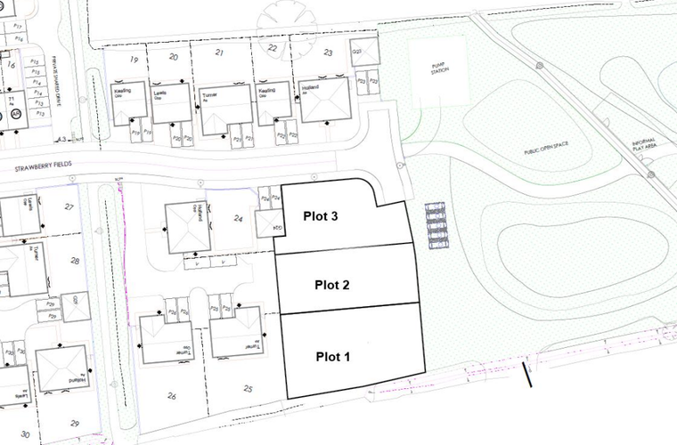 Location - The plots are situated amoungst the Persimmon Homes, Charles Church Strawberry Fields new homes development in the village of Sutton on Trent. They are situated at the edge of this development, adjacent to the open space, footpath and play area.