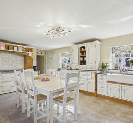 Access from the rear via stable style doors, a very practical useable room fitted with a row of bespoke, hand made storage and cloak cupboards to one side. To the other side are further matching storage units with granite worktops and twin bowl butler sink inset.