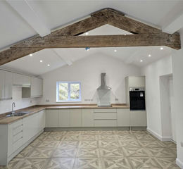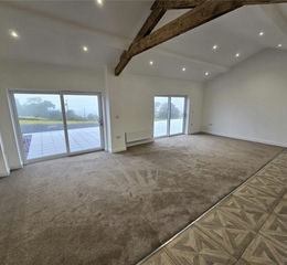 Seamlessly connected to the lounge, the open-plan kitchen/diner features a newly fitted kitchen complete with built-in oven, electric hob, and integrated dishwasher. Exposed wooden frame features throughout the above. An external door provides additional access to the front patio.