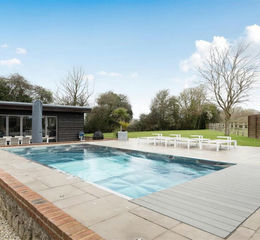 Externally, the gardens have been thoughtfully arranged to provide a balance of usable and low maintenance space, including a terrace suitable for outdoor dining, areas of lawn and a kitchen garden. The heated swimming pool forms a central feature, complemented by an adjacent contemporary entertaining building with bi-folding doors, incorporating a bar area, kitchen facilities and space suitable for a pool table, creating a versatile environment for a range of uses.