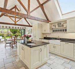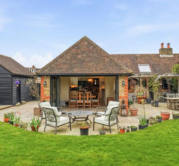 At Hound and Porter we pride ourselves on bringing unique homes to the market, and “The Kennels” is no exception. This wonderful three double bedroom converted barn has been painstakingly improved this over recent years to include a beautifully fitted kitchen/family room with shaker style units, ample granite worksurface and a fantastic range cooker. There is plenty of space for a family table, tiled floor, a beautiful vaulted ceiling and panoramic bi-fold doors to an unbelievable vista. A fabulous living room boasts an incredible Inglenook fireplace, has original floorboards and double French doors to the rear garden. The master bedroom has another vaulted ceiling and large en-suite, two further bedrooms and a luxuriously fitted family bathroom concludes the internal home accommodation. Let’s move outside, feast your eyes on incredible far reaching viewing views whilst relaxing under the pergola, draped it wisteria, or relax by the Oak entertainment bar listening to the sound of running water. Step through the archway to your own paddock of around 1.5 of an acre, with fully working cabin and your own coy carp pond. The double car barn has been converted to an entertainment room, although could be perfect a nanny or au-pair and there is a gated private drive for eight cars. So, if you are looking for an incredibly unique home within grounds of outstanding beauty, we highly recommend you take a look around.