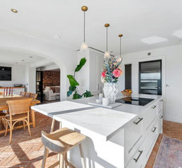 Throughout, the level of finish is exemplary. Lusso Stone sanitaryware, sleek internal and external Crittall-style doors, quartz work surfaces, and natural stone flooring combine to create a tactile and visually cohesive aesthetic. The bespoke kitchen stands as both a design statement and a functional centrepiece, perfectly suited to modern family living and entertaining alike.
