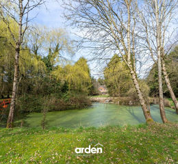 The private south-easterly facing rear garden is a truly tranquil and secluded setting. A generous patio area, complete with greenhouse, leads onto an extensive wrap around lawn with a wide variety of mature trees. At the far end of the garden lies a substantial pond with a central island, which previously featured a bridge access. To the front, the property benefits from a large driveway, front lawn and mature planting, along with access to a double garage.