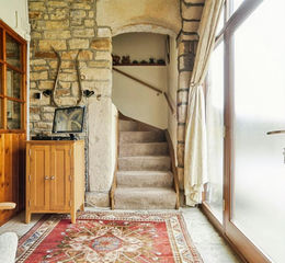 Upon entering the ground floor, you are welcomed by an inviting entrance hallway that immediately sets the tone for the rest of the property. The well-appointed kitchen offers a range of wall and base units, complemented by a integrated dishwasher. Finished with a stone floor and exposed beams, the space perfectly blends practicality with rustic charm. A separate utility room provides additional convenience with space and plumbing for a washing machine.