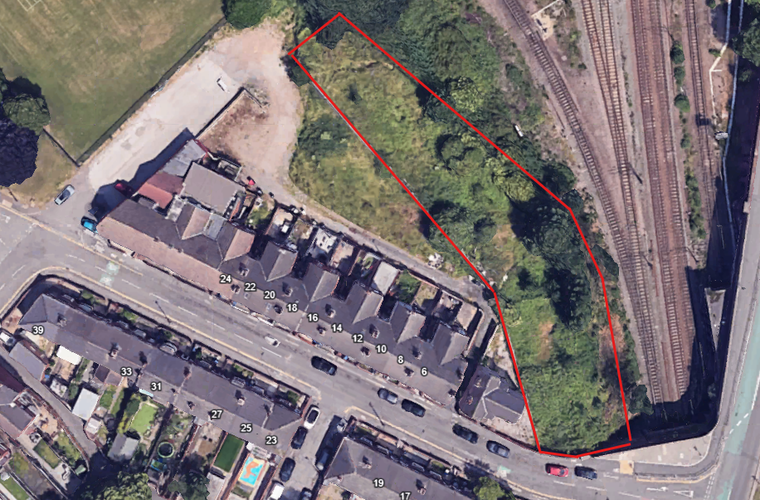 The site is clearly defined and edged red on the title plan (Title No. SYK246634) and comprises a largely level area of grass and vegetation, bounded by residential housing to the south and west, and railway infrastructure to the east.