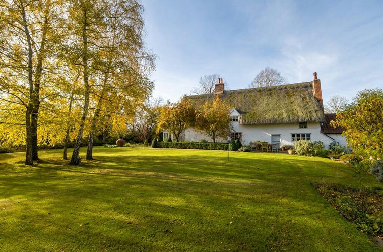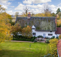 A truly remarkable detached Grade II Listed thatched cottage, The Glebe dates back to the early 17th century and has been thoughtfully improved to the highest of standards throughout. Nestled in an idyllic setting that attracts a wealth of wildlife, the property is discreetly positioned off the village common, offering a rare combination of comfort, character, and privacy. Situated within the Conservation Area of Mellis, the home is set within beautifully established gardens extending to approximately 2.35 acres (STS), which include a studio annexe, ponds, orchard, woodland, and productive vegetable gardens.