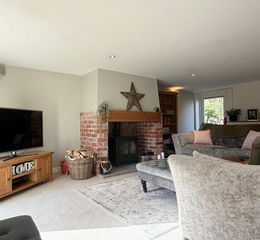 Living Room - A spacious lounge with feature wood burning stone, exposed brick surround, tiled hearth and wooden mantle over, recess spotlights, four wall lights, double glazed window to the front aspect, double glazed door to the front and to the rear.