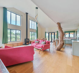 The living space has been designed to make the most of the natural light. Large windows offer beautiful views of the garden and surrounding countryside, creating a seamless connection between indoors and out. The room has a simple yet elegant design offering a fabulous feel for family living.