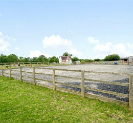 The stable yard comprises a timber block of 4 stables with tack room, store, hay barn and feed room with hardstanding in front which leads to the sandschool surrounded by post and rail fencing. The land is split into 4 paddock areas with 1 field shelter.