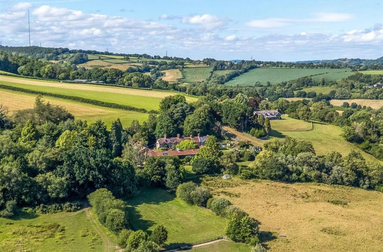 A charming 5 bedroom Arts and Crafts country house set in a hidden valley, extending to 44.30 acres (17.93 ha). One bedroom cottage, studio annexe, versatile traditional barns, stabling and outbuildings. Mature landscaped grounds with a pond, pasture paddocks and broadleaf woodland.