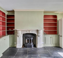 historic estate of Widworthy Manor. After a fire in the 1880’s, the property was extensively rebuilt in the Arts and Crafts style. In more recent history, Halshayne has been extended and sensitively divided into two unique residences. The later addition, Halshayne Wing has separate access and is discreetly located to the east of the courtyard. This quintessential late Victorian house is built of mellow local stone with brick quoins and dressings under a decorative tiled roof. Much of the charm and character of the house remains, which is evidenced by original features including bay windows, decorative roof tiles and barge boards, inside there are some original tiled floors and fine fireplaces. Downstairs the drawing room features a fine decorative plaster ceiling, whilst the library has a woodburner, perfect for cosy evenings. The kitchen has solid wood bespoke units, Aga and Belfast sink. The adjacent dining room features an inglenook and smoke chamber from the original dwelling. Both rooms open into the light-filled morning room giving access to the garden. Upstairs the accommodation features a main bedroom with two ensuites and a walk-in wardrobe, with four further bedrooms, one with an ensuite shower room and a family bathroom. An exacting scheme of restoration and maintenance has been carried out in recent years, including installing underfloor heating throughout most of the ground floor of the main house and studio annexe. Halshayne Manor Farm offers a versatile rural haven, with the land offering protection and utility, whilst the flexible outbuildings offer potential to customise the accommodation for multi-generational living or providing an income.