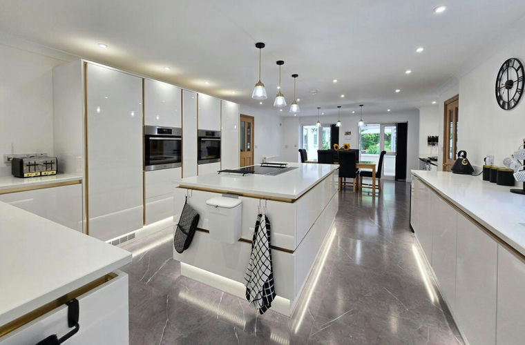 The front door opens into an entrance hall, and on the right is the primary reception room, which is dual aspect and has a lovely wood burner and doors onto the primary conservatory. On the left is the recently fitted dual aspect showpiece kitchen / diner, which has work surfaces to 3 sides, a large central island with induction hob, side by side double ovens and integrated refrigerator, freezer and dishwasher. The units are a stylish contrast of white with gold accents, and the quartz work surfaces are striking. Next to the kitchen is the utility room with integrated units providing elevated spaces for a washing machine and tumble dryer with retractable folding shelves below each. Beyond the kitchen / diner is a large central hallway providing access to the sleeping quarters, and stairs lead to a converted loft that is ideal as a games room, cinema room or a variety of other uses. Three of the bedrooms are en suite, with the primary en suite having a separate shower and bath, and the fourth bedroom is directly across from the updated family bathroom. All of the bedrooms are spacious doubles.